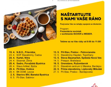 ASAS Aliancia stavebnín vás srdečne pozýva na raňajky s dodávateľom Saint-Gobain - Isover – ideálna príležitosť na chutný začiatok dňa a zaujímavé informácie zo sveta stavebníctva!