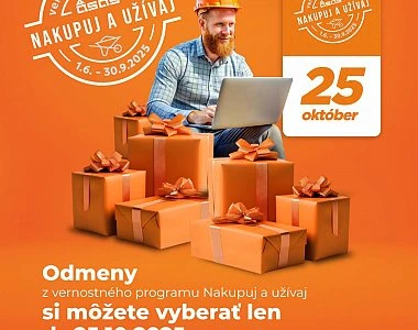Nezabudnite – odmeny z vernostného programu Nakupuj a užívaj 2025 si môžete vyberať len do 25. októbra 2025. Po tomto dátume už nebude možné uplatniť nazbierané body. Využite preto svoju šancu a doprajte si zaslúženú odmenu včas. Nakupujte, zbierajte body a nenechajte svoje výhody prepadnúť!
